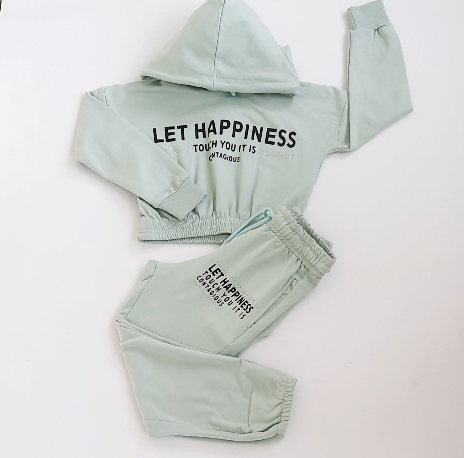 For a cool comfy look, this outfit have it all. Love this sage colour, so popular for this season. The hoodie is short just finishes at the waist. The sweatpants has a loose fit with pull string at the waist& cuffed leg ends. A fantastic quality cotton outfit.